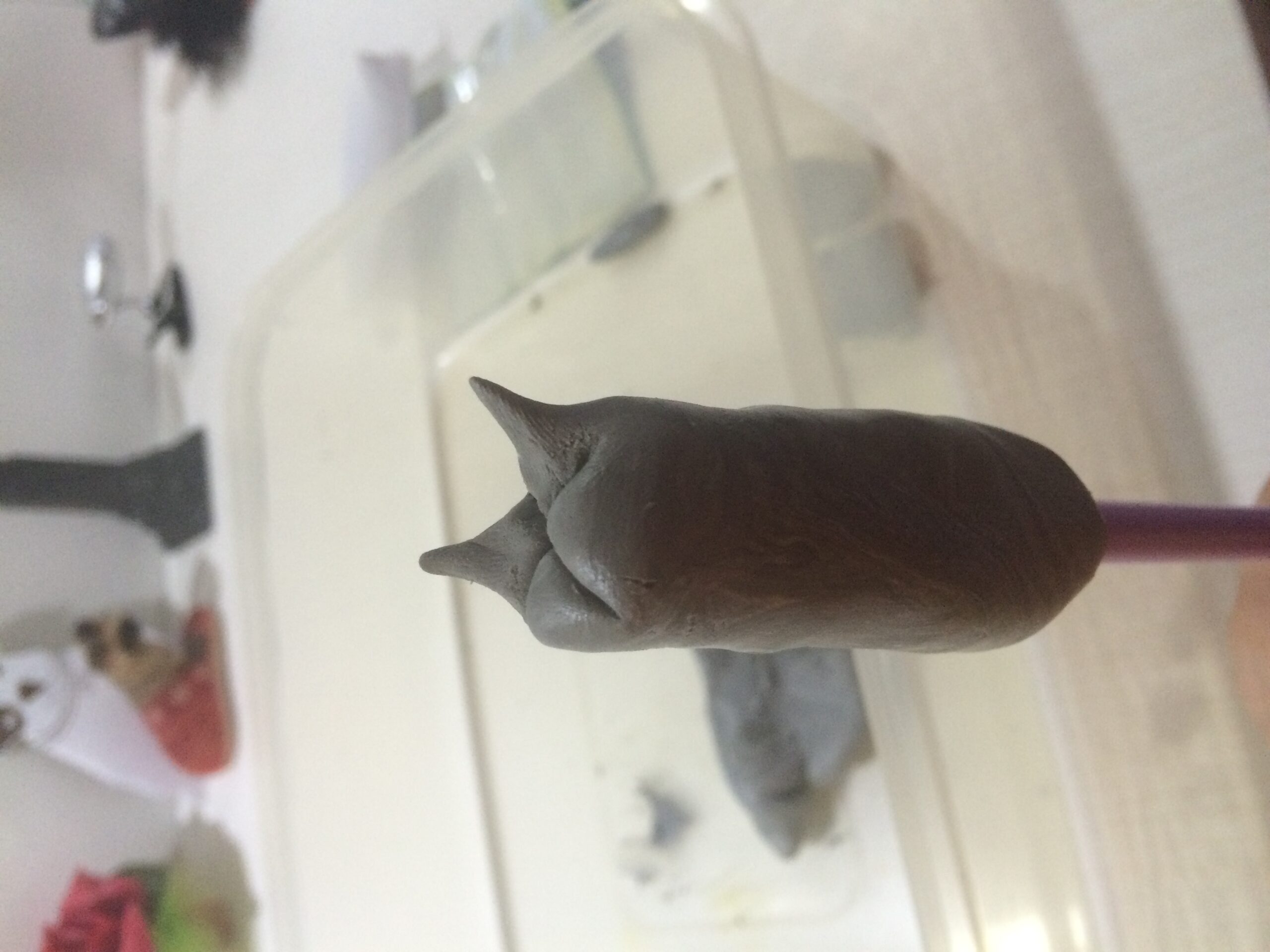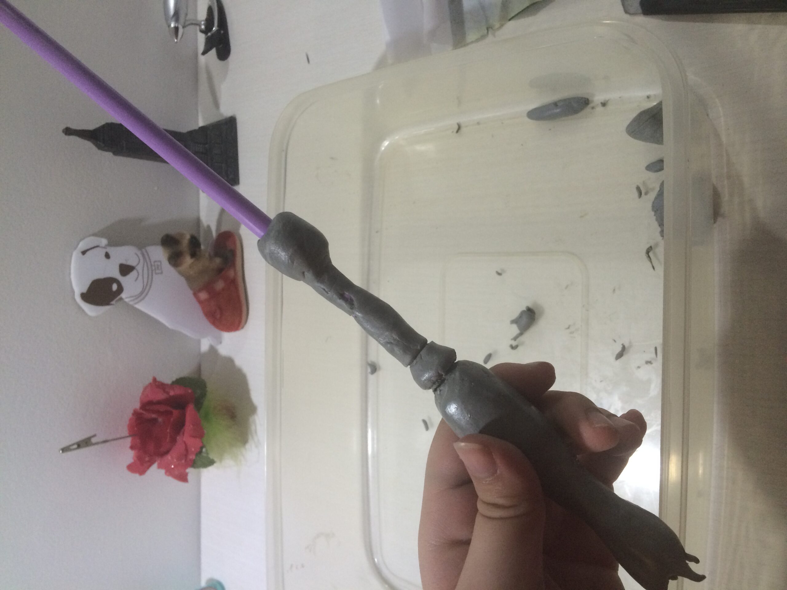 8- Envolva a agulha com mais massa, fazendo um “calombo” na metade da varinha.