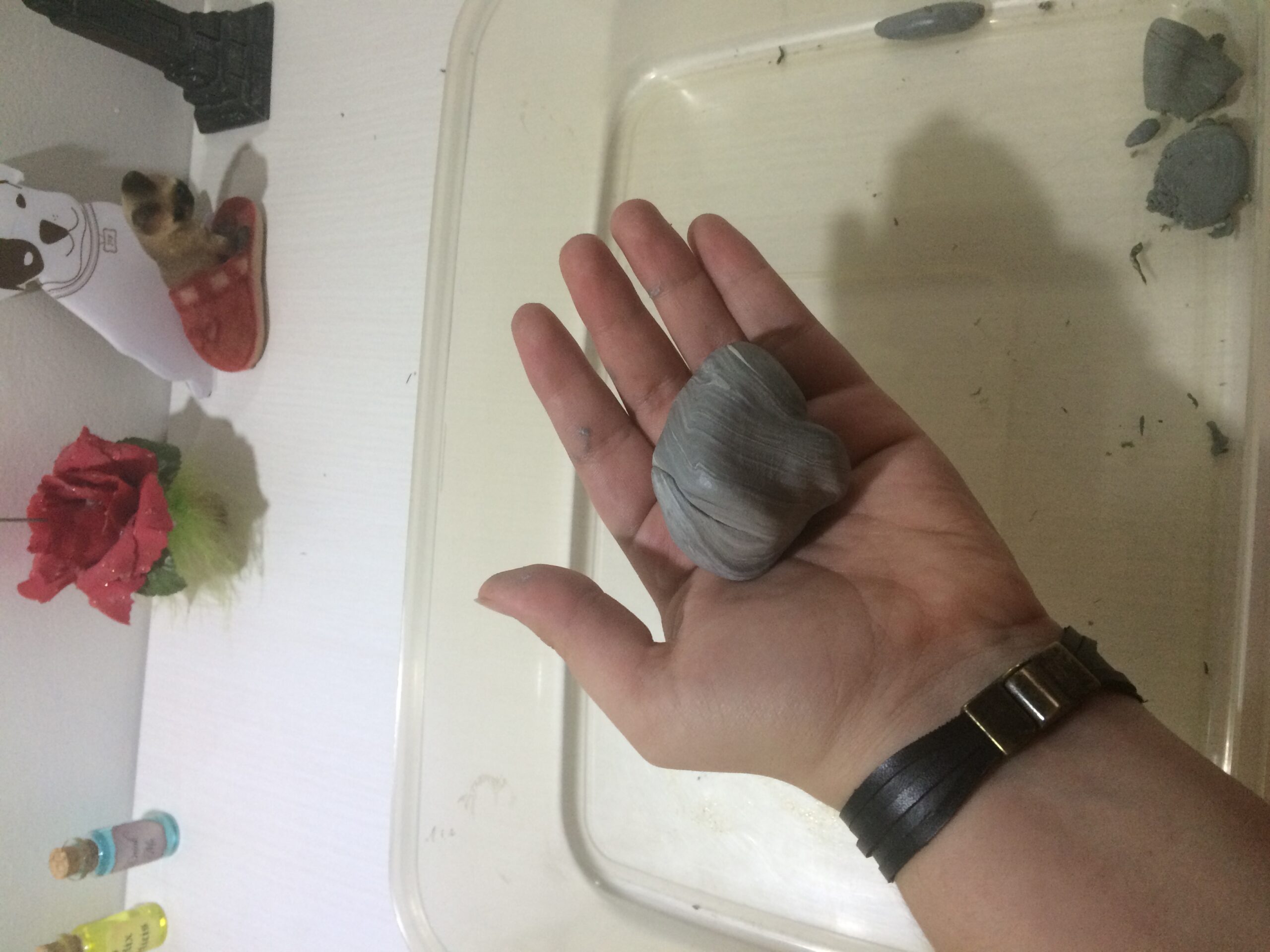 2- Misture os dois materiais que vêm na caixa, até formar uma massa cinza-claro homogênea, como a da foto.