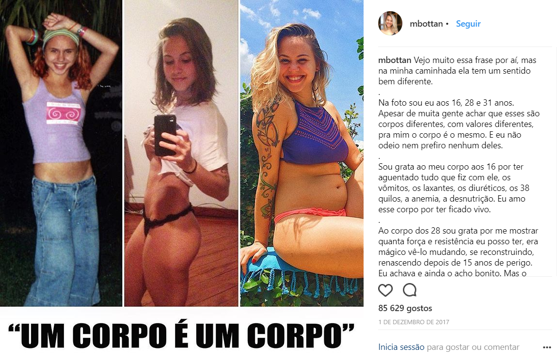 A brasileira, que lutou contra a bulimia, usa seu instagram como um espaço para divulgar mensagens sobre positividade, textos e fotos inspiradores. Além disso, ela fala muito sobre os transtornos alimentares e as diversas concepções erradas que são formadas sobre eles.