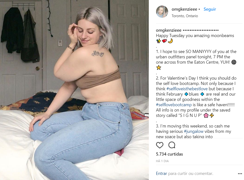 Kenzie é uma canadense que se utiliza de seu instagram para espalhar mensagens sobre body positivity. Ela também sobreviveu à distúrbios alimentares e, hoje, fala sobre o corpo de uma forma positiva, mostrando e comentando coisas que são consideradas feias socialmente.