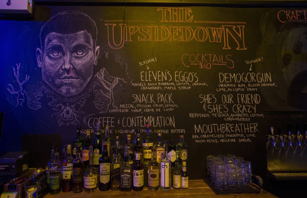 Foi aberto em Chicago, nos Estador Unidos, um bar temporário com um tema super especial: Stranger Things, a série de sucesso mundial da Netflix. Com o nome de “The Upside Down” (referência ao mundo paralelo do seriado) o bar não poupou esforços para desenvolver detalhes criados pelo seriado da plataforma de streaming.