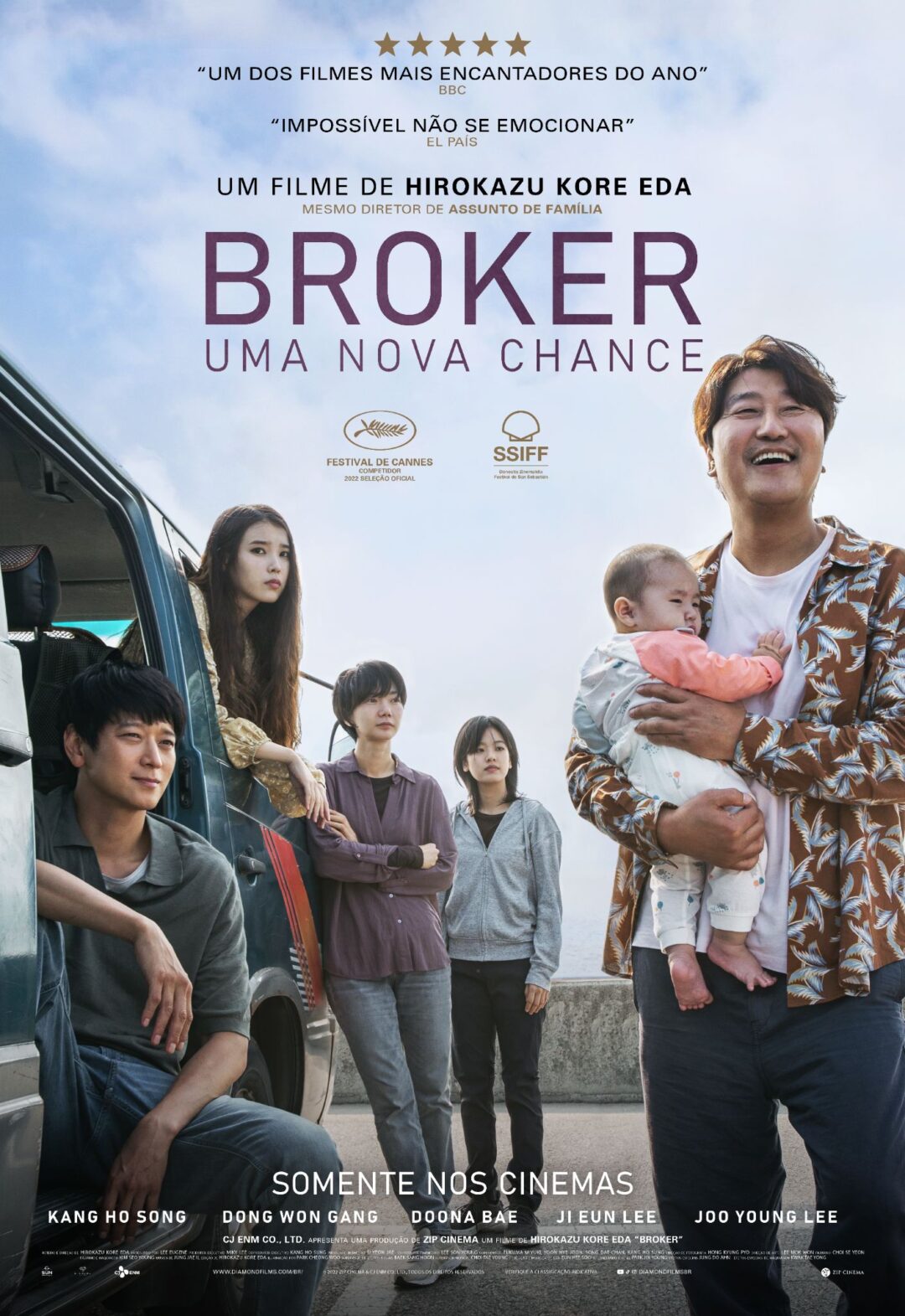 A Diamond Films traz para os cinemas brasileiros o aclamado filme sul-coreano BROKER – UMA NOVA CHANCE (Broker). Do renomado diretor Hirokazu Kore-eda (“Assunto de Família”), o longa chegará às telonas em 6 de abril. O drama rendeu o prêmio de Melhor Ator para Song Kang-ho (“Parasita”) em Cannes 2022 e foi exibido no Festival do Rio 2022.