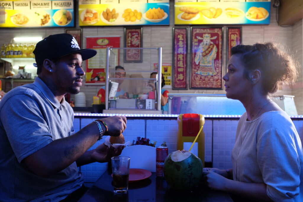 Por fim, destaca o trabalho com o diretor de fotografia Pedro Sotero e a direção de arte de Thales Junqueira. “Pensamos muito sobre qual imagem gostaríamos que o filme tivesse e entendemos que a textura era algo essencial nessa construção. Então nosso trabalho de arte e fotografia foi no sentido de construir essa textura específica que reforçasse a existência do meio.”