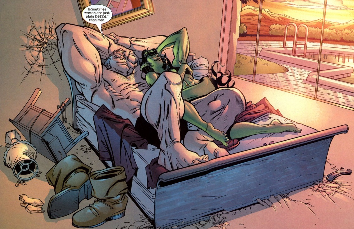 Desolada ela faz o que precisa para superar suas dificuldades, vai a um bar e enche a cara, enquanto relaxa com uma caneca de cerveja na mão ela é atacada pelas costas e congelada pelo vilão conhecido por Nevasca. Claro, não dura muito, ela se livra do gelo, mas invés de quebrar a cara do seu adversário ela o convida para beber, surpreso ele aceita, claro que seria melhor beber cerveja invés de levar uma surra da Mulher-Hulk.